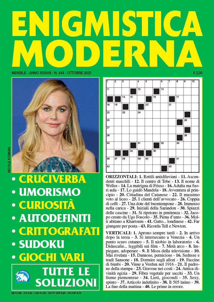 Oltre 80 pagine di cruciverba, autodefiniti e rubriche tra cui “Italia archeologica” e “Sapori e sapere”.
